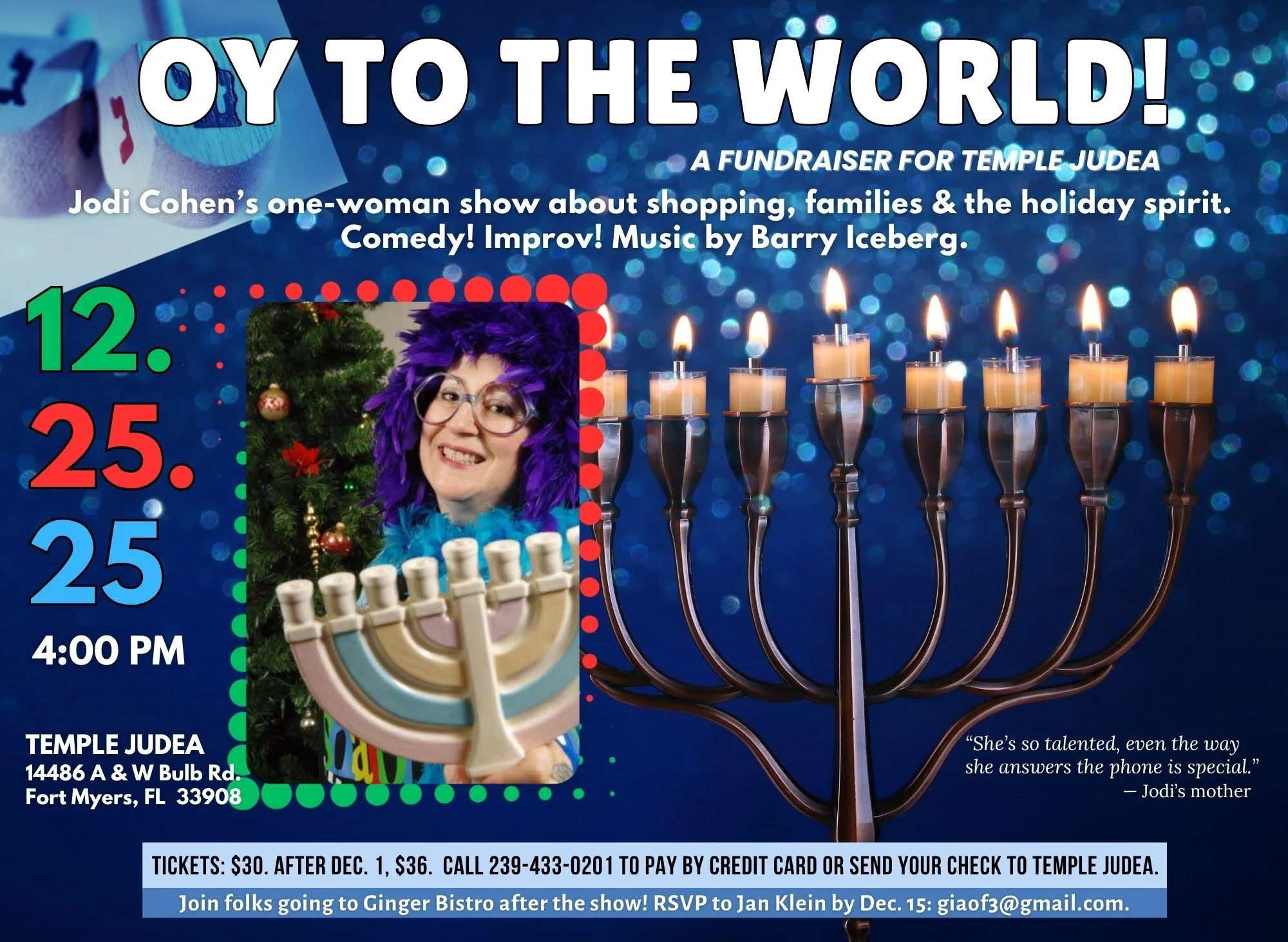 A hilarious and heartfelt performance blending humor, storytelling, and Jewish spirit—perfect for a lighthearted December evening.